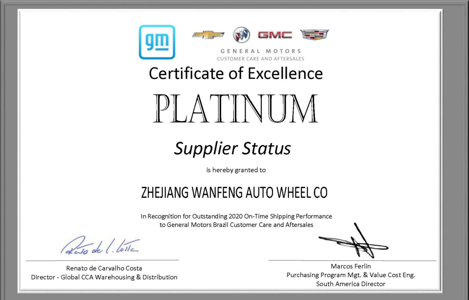 2020. China-based Zhejiang Wanfeng Auto Wheel (002085) was awarded the 2020 GM